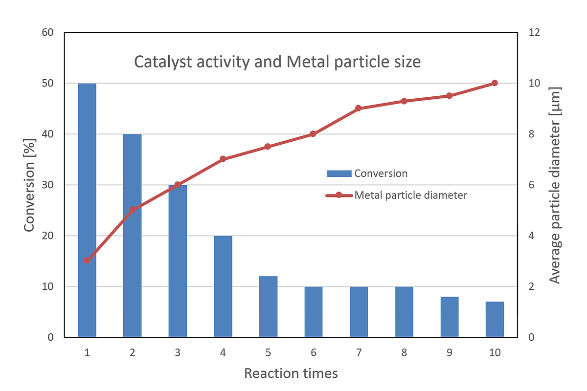 The metal dispersion rate is a critical parameter in heterogeneous catalysis. It refers to the proportion of metal atoms that are exposed on the surface of a catalyst relative to the total number of metal atoms present (often expressed as a percentage). Metal dispersion can be calculated through pulse chemisorption using gases such as CO or H2, which selectively chemisorb onto the metal surface. This is achieved by continuously pulsing a specified amount of gas into the sample until saturation is reached. Pulse measurement determines the chemisorbed quantity by taking the saturated peaks as a reference. The difference in peak areas between unsaturated and saturated state is giving the adsorbed amount. The metal dispersion rate is essential for assessing, optimizing, and understanding the performance and longevity of metal-based catalysts.